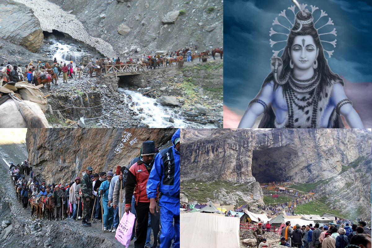 Amarnath cave is a Hindu shrine located in Jammu and Kashmir, India. The cave is situated at an altitude of 3,888 m, about 141 km from Srinagar, the capital of Jammu and Kashmir and reached through Pahalgam town